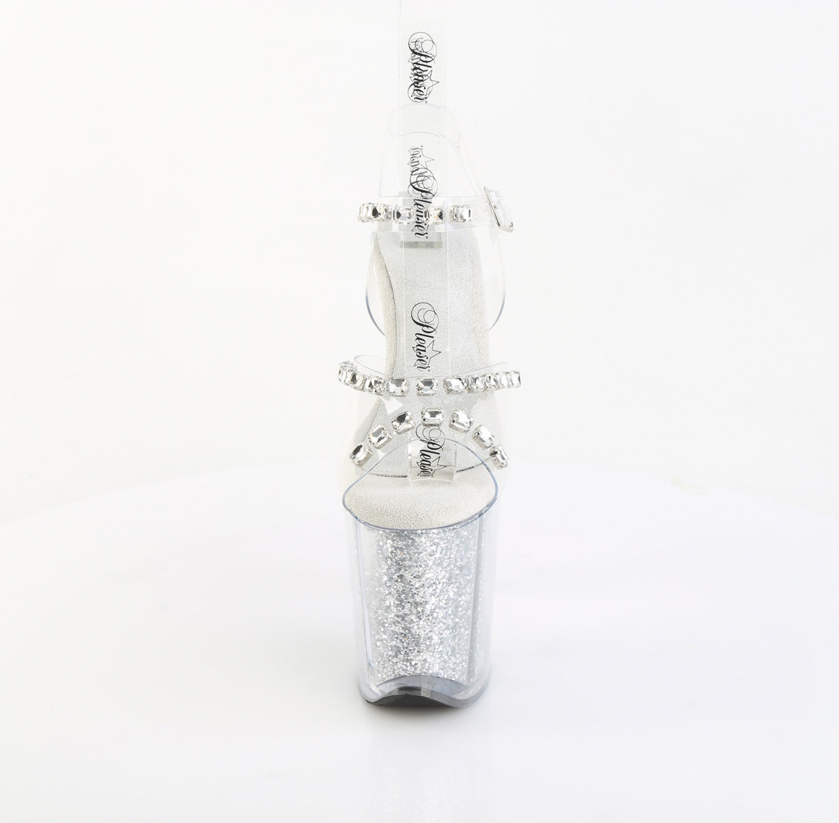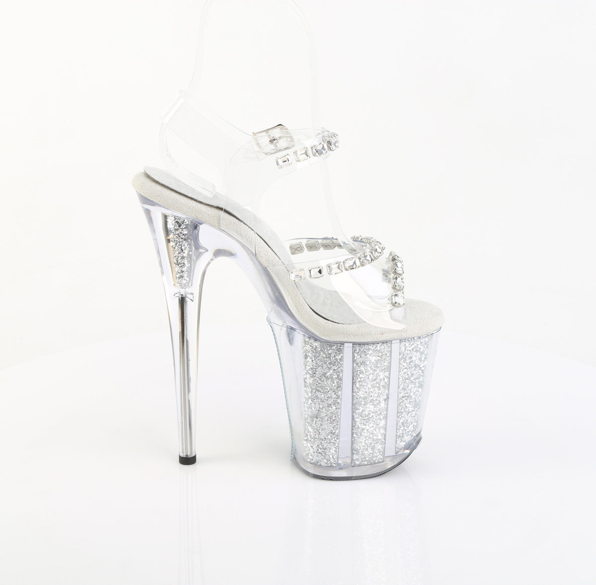 8" Heel, 4" PF Ankle Strap Sandal w/Glitter Inserts