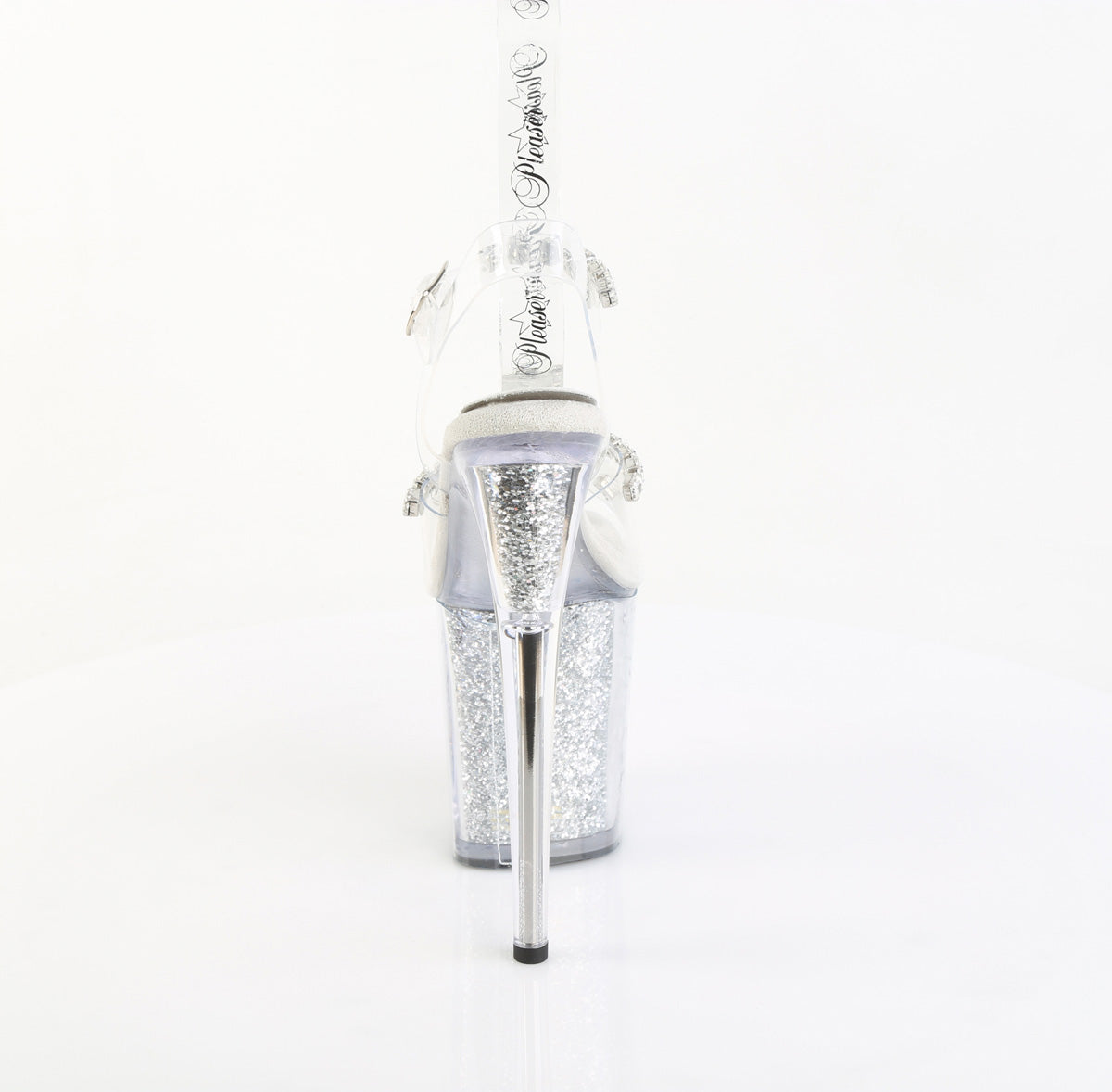 Pleaser Women's Platform Shoes FLAMINGO-808PREM-STN Clr TPU/Slv Glitter Ins