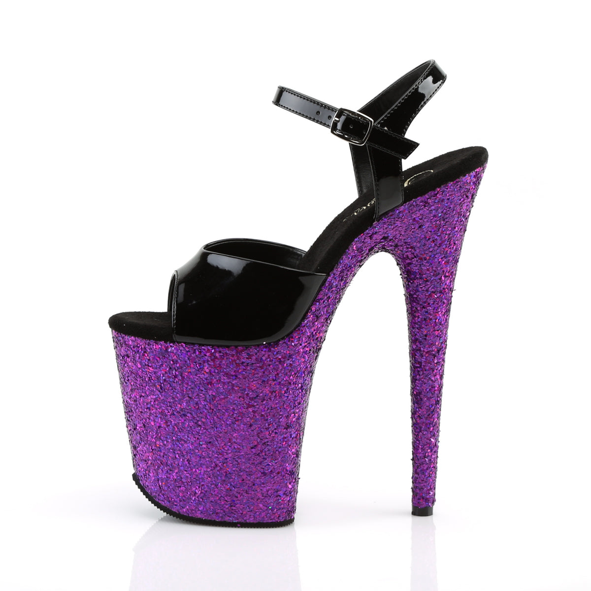 | Additional Description | 8 "" (200mm) tallone, 4 "" (100mm) Sandalo alla caviglia della piattaforma con glitter olografici che coprono l'intero fondo della piattaforma |