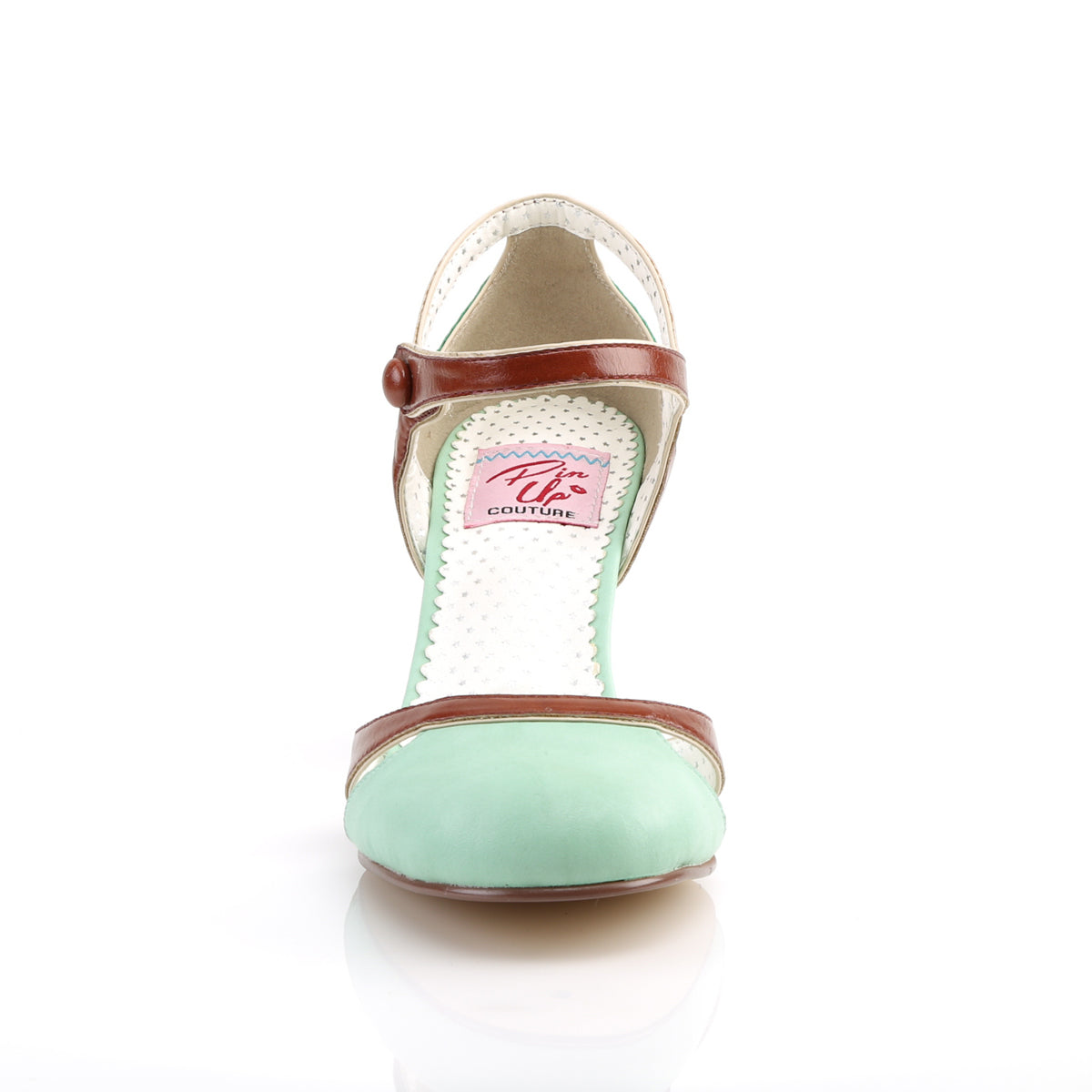 Pin Up Couture Pompe da donna FLAPPER-27 Mint-Brown Ecopelle in ecopelle
