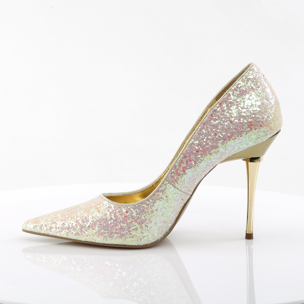 | Description | 4 "" (10,2 cm) con tacco a spillo a spillo in acciaio Pump con glitter. |