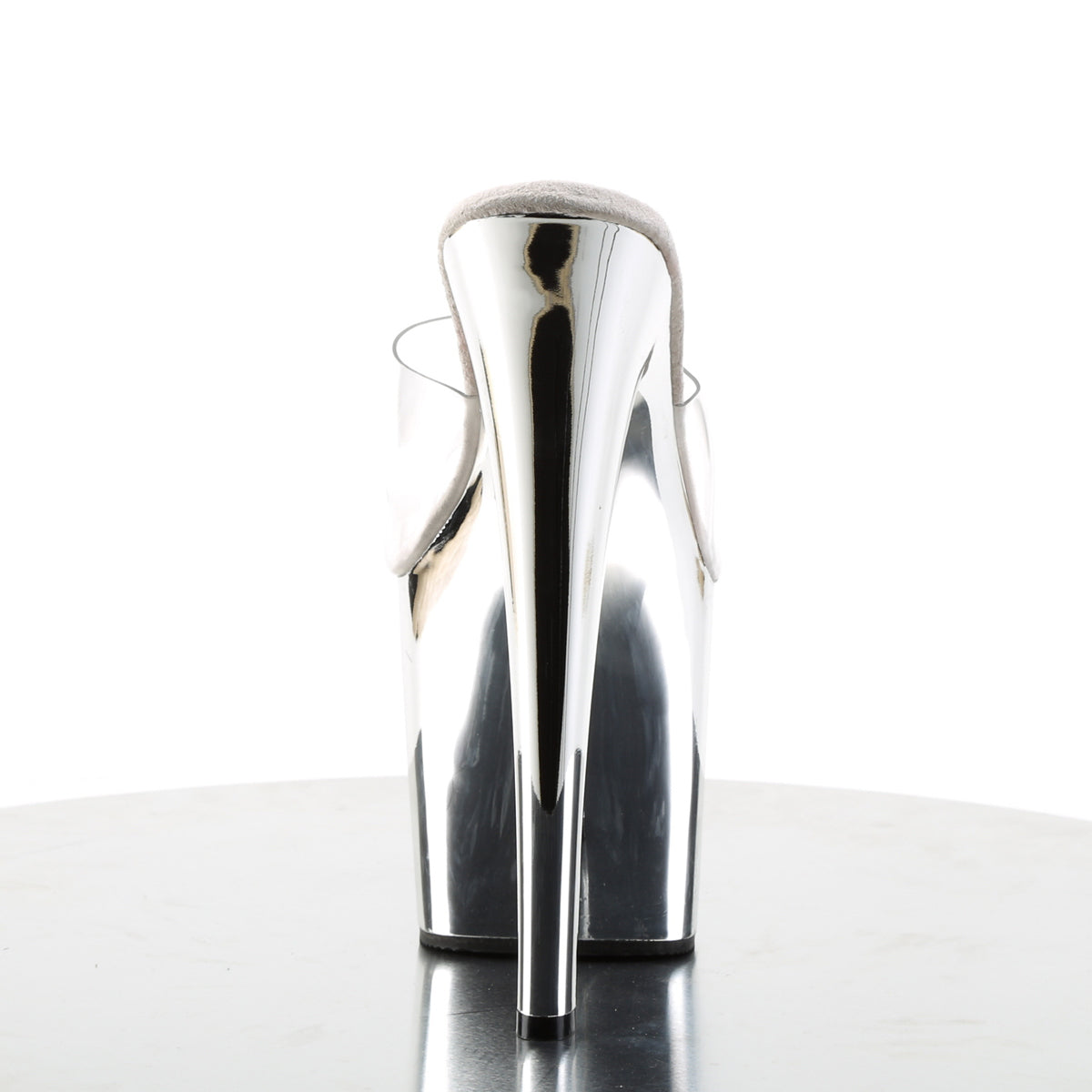 | Description | 7 1/2 "" (19,1 cm) tacco, 3 1/2 "" (8.9 cm) Piattaforma cromata Peep Toe Slide |