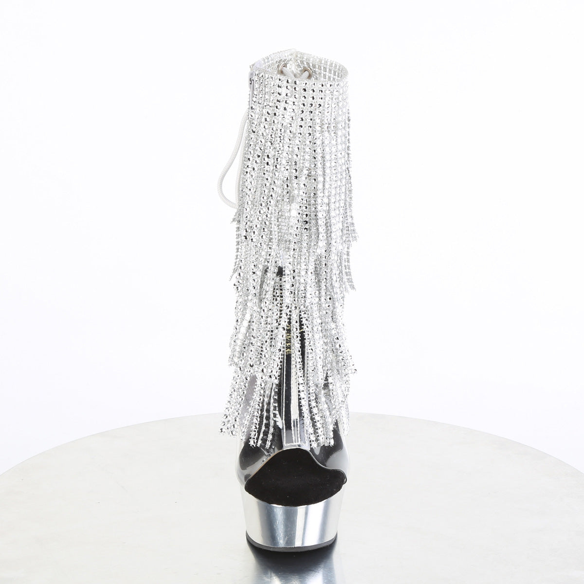 | Description | Tacco da 6 pollici, 1 piattaforma da 3/4 pollici PIATTAFORMA APERTA APERTA / Stivaletto per caviglia con frange |