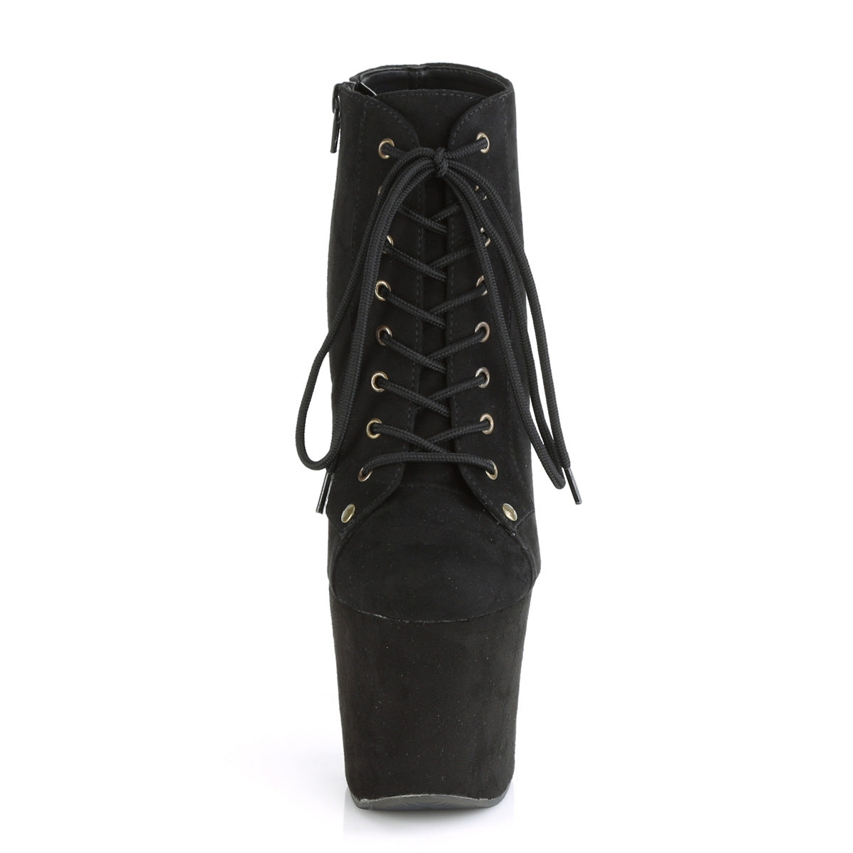 | Description | Tacco da 7 pollici, 3 1/4 pollici Platform lace-up anteriore anteriore bootie, interno zip |