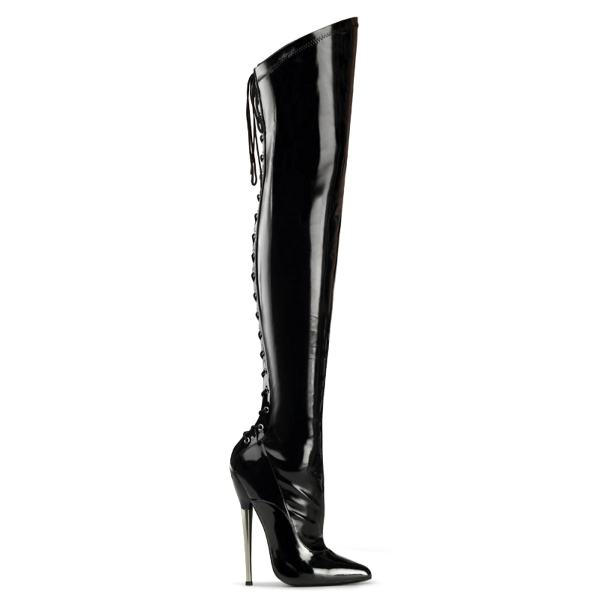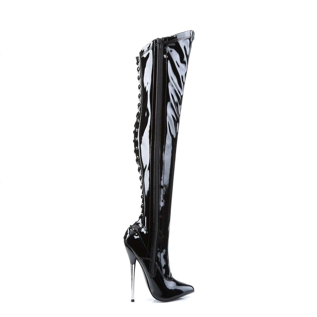 Devious Womens Boots DAGGER-3060 Blk Stretch Pat