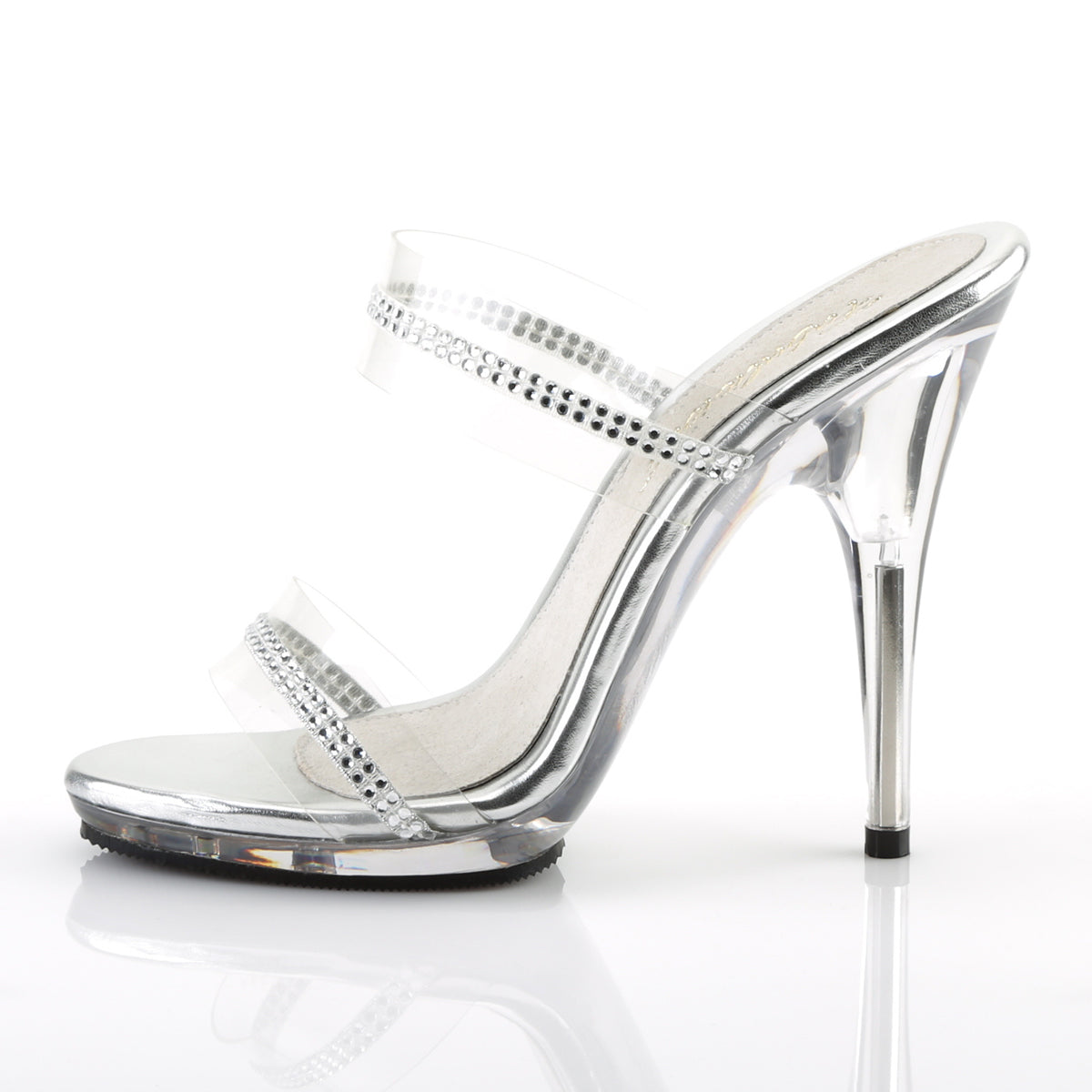 Additional Description 5"" (12.7cm) Heel, 3/8"" (1cm) Platform Two Band Slide W/Rhinestone Embellishments Across Vamp