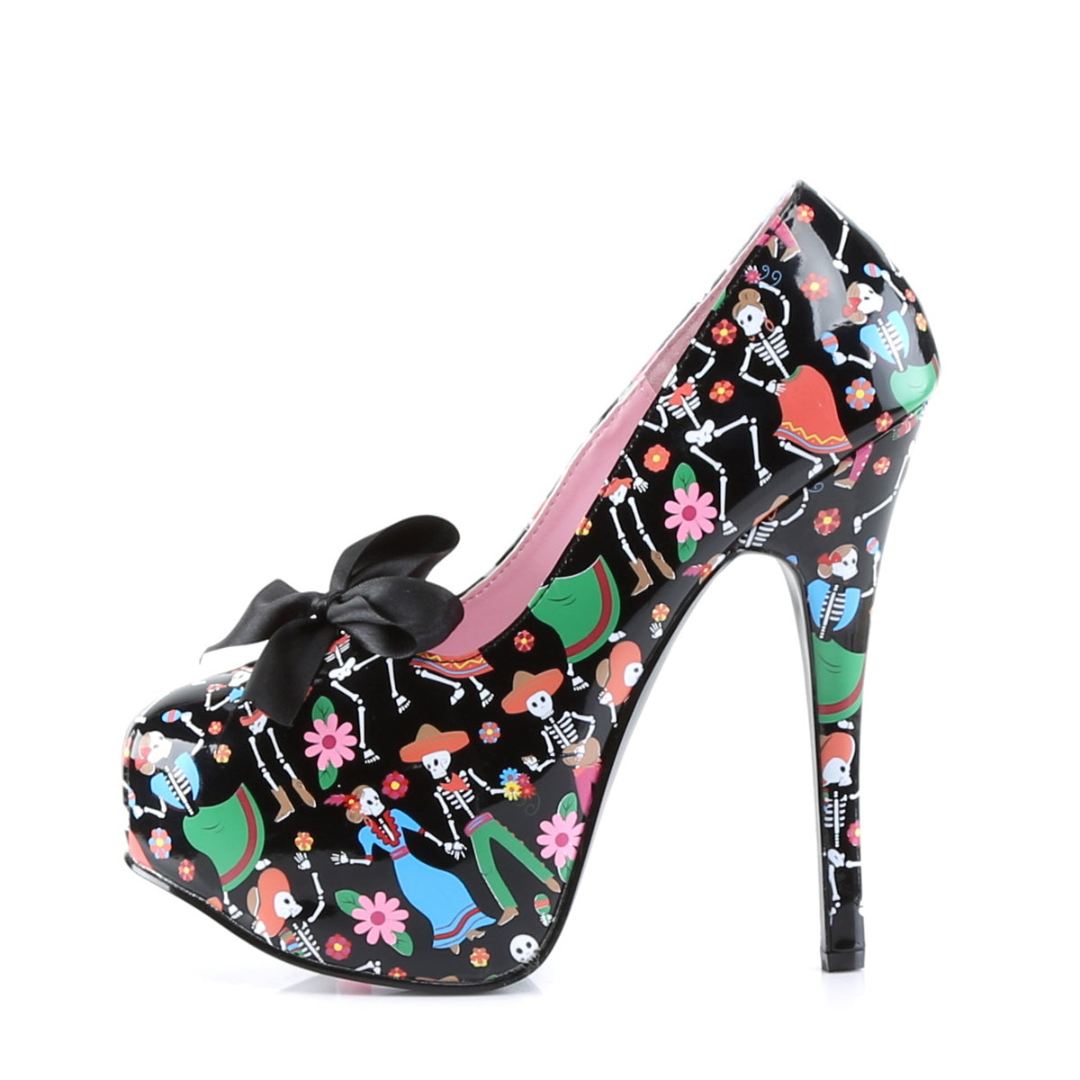 Pin Up Couture Womens Pumps TEEZE-12-4 Blk Pat (Muertos Print)