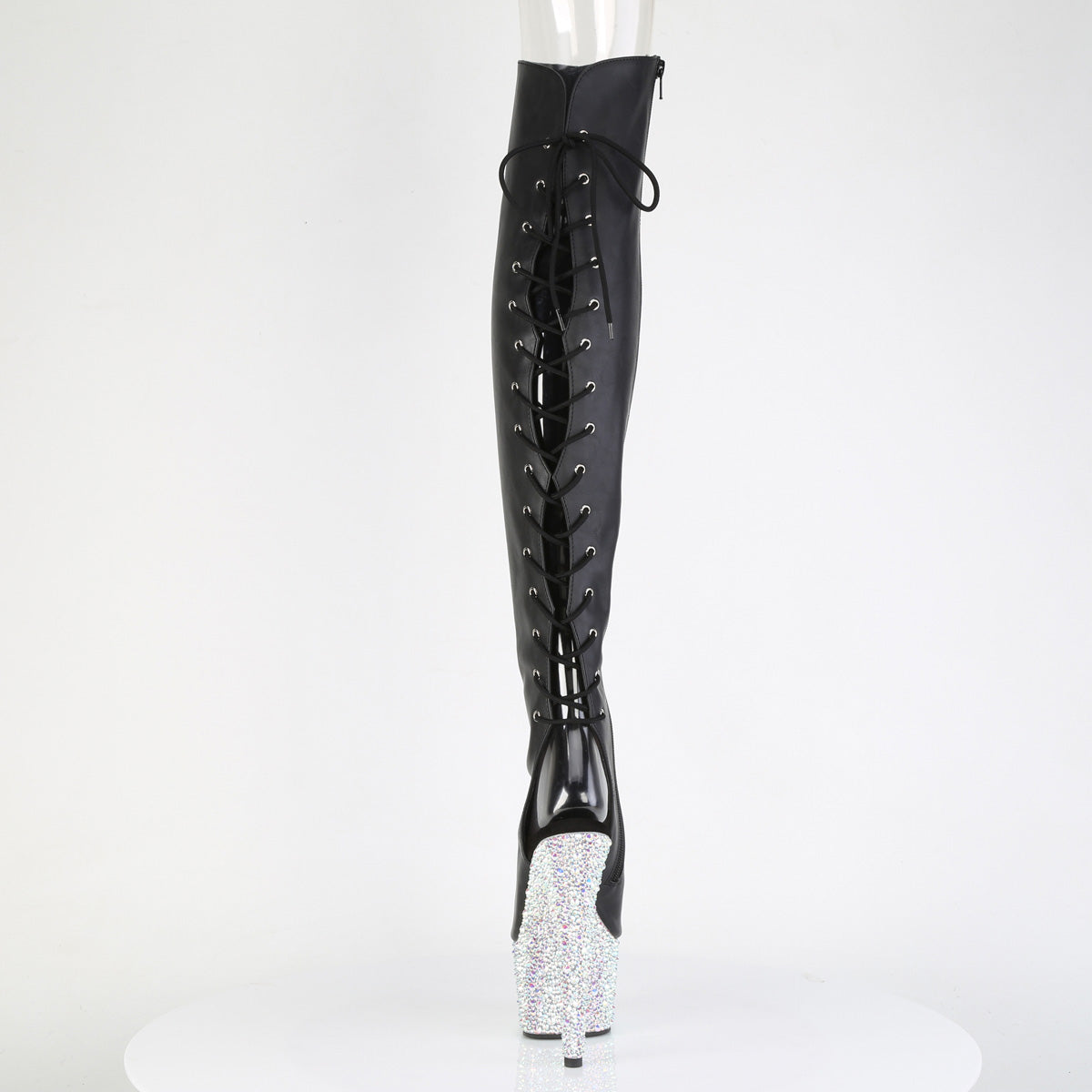 Pleaser Women's Platform Shoes BEJEWELED-3019MS-7 Blk Faux Leather/Slv AB RS