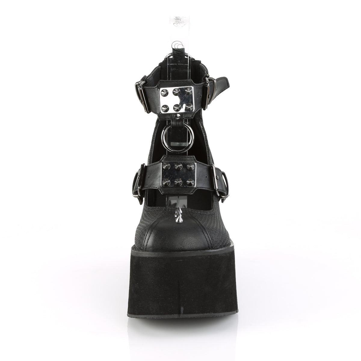 | Description | 4 1/2"" (114mm) Platform MaryjaneFeaturing Dual Buckle Straps w/ Cone Spike Studded Metal Plates & O-Ring Details |