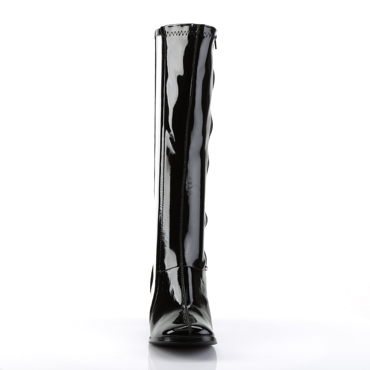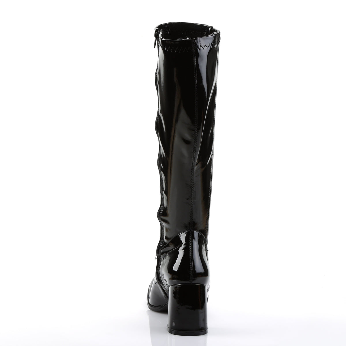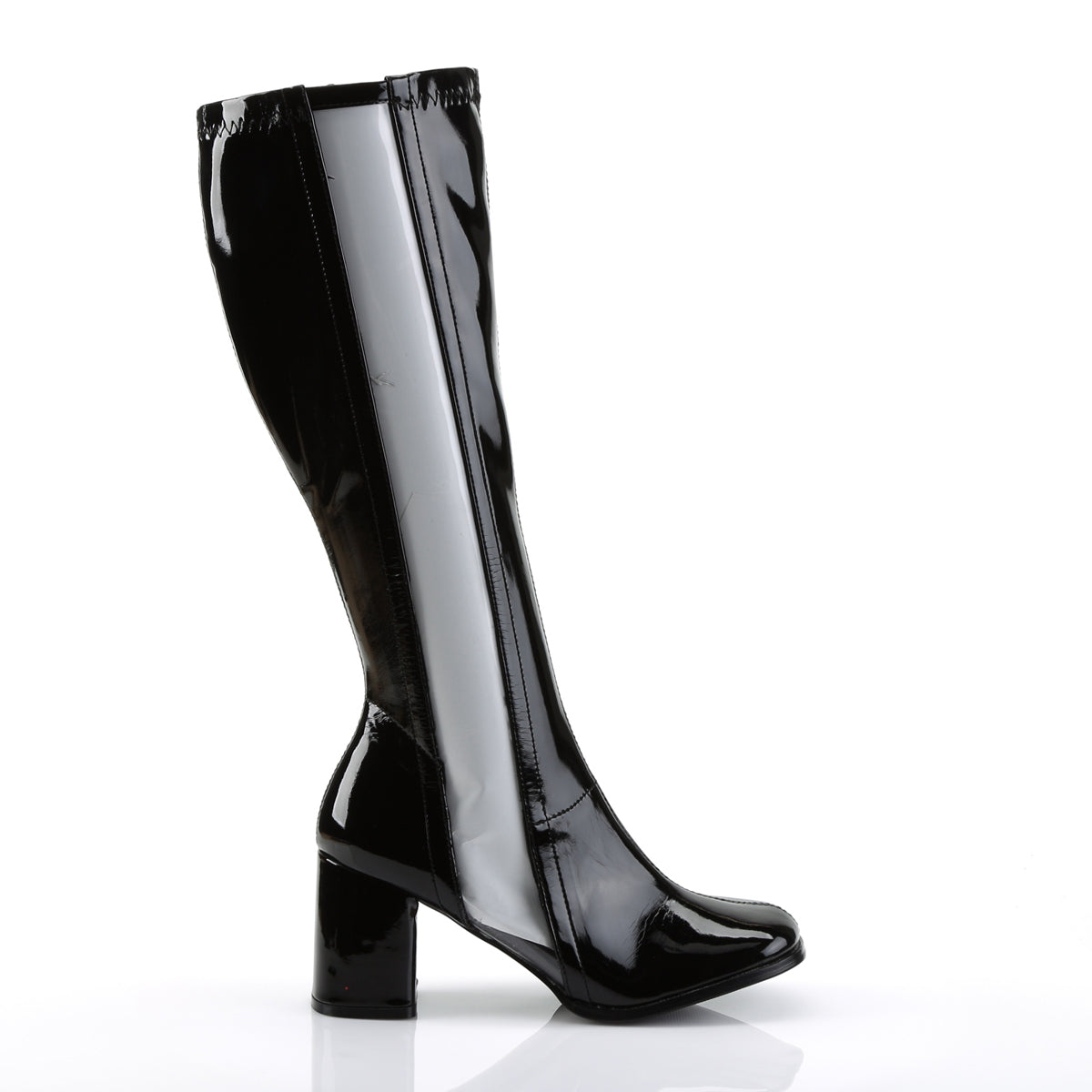 3"" (7.6cm) Block Heel Gogo Boot, Stretch Patent, with Transparent Stripe On the Outer Side, Full-Length Inner Side Zip Closure