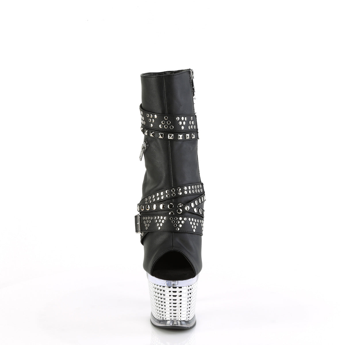 Pleaser Ankle Boots SPECTATOR-1015 Blk faux Leather/Clr-Slv Chrome