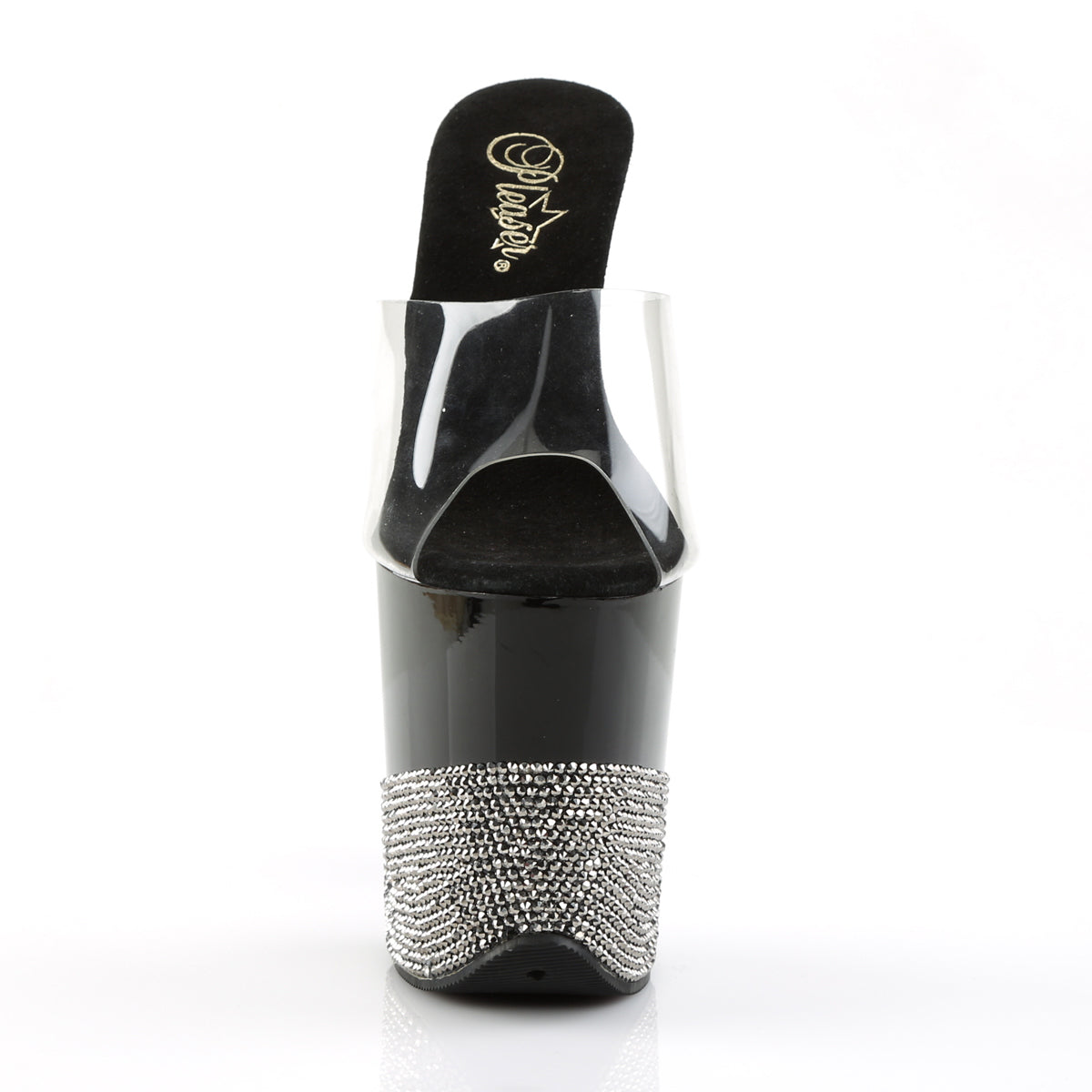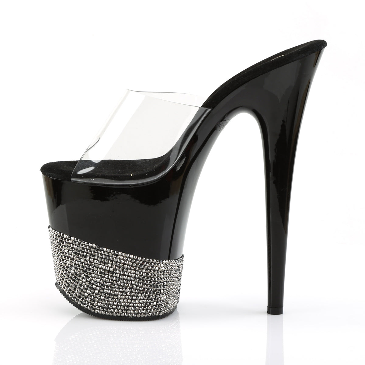 8"" (20.3cm) Stiletto Heel, 4"" (10.2cm) Platform Slide Featuring Rhinestone Encrusted All Over Lower Platform