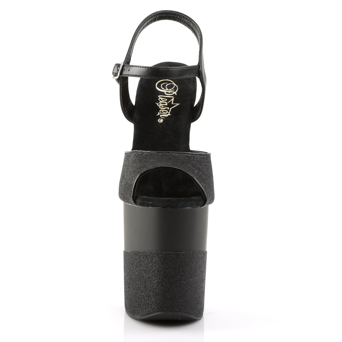 Pleaser Womens Sandals FLAMINGO-809-2G Blk Glitter/Blk-Glitter