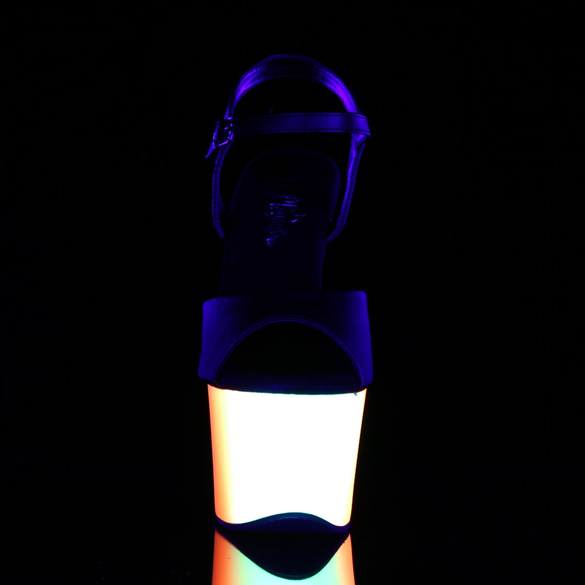 Additional Description 7"" (17.8cm) Heel, 2 3/4"" (7cm) Platform Ankle Strap Sandal Featuring Neon UV Reactive Multicolored Platform Bottom