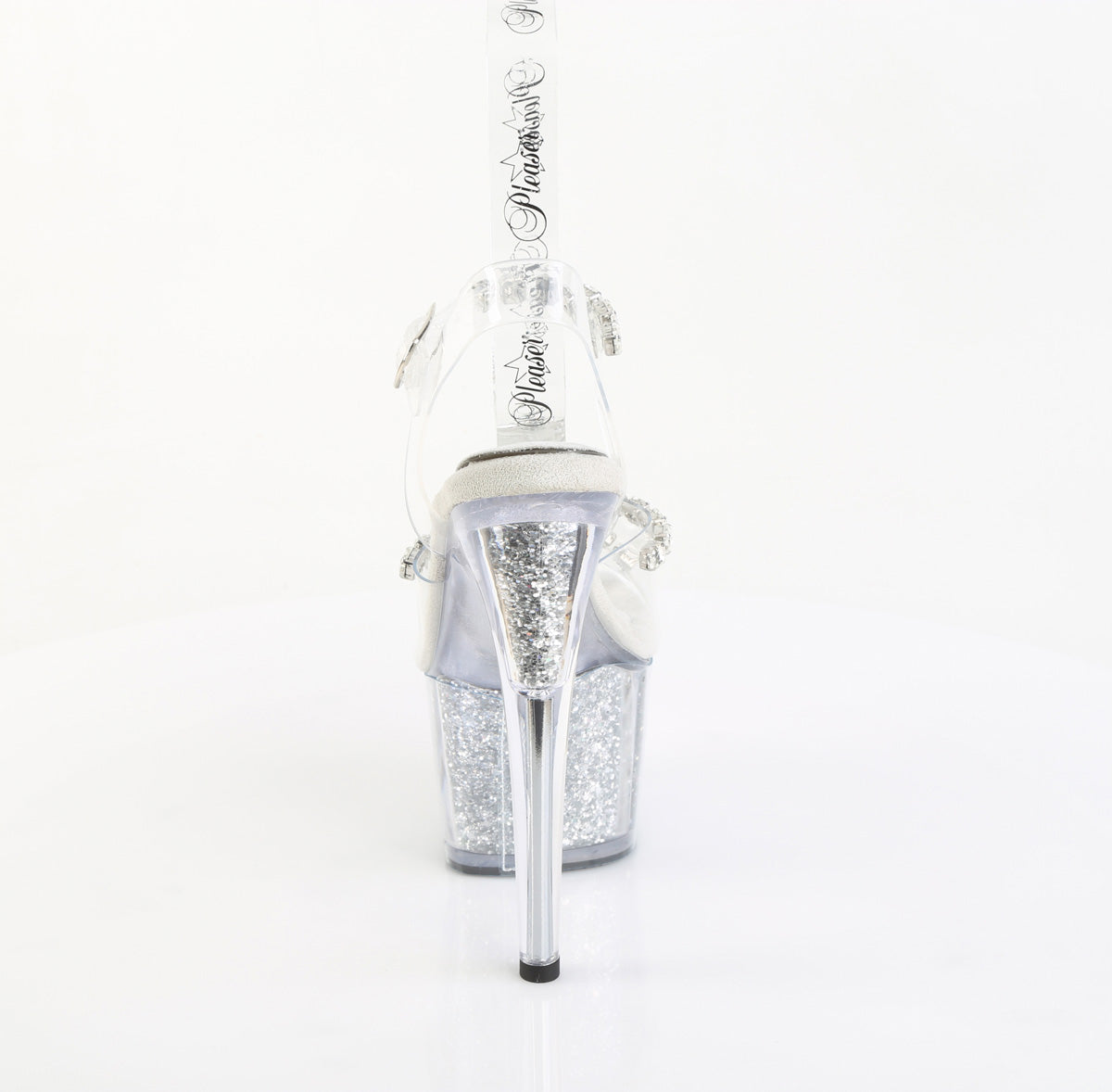 Name Pleaser Women's Platform Shoes ADORE-708PREM-STNG Clr TPU/Slv Glitter Ins