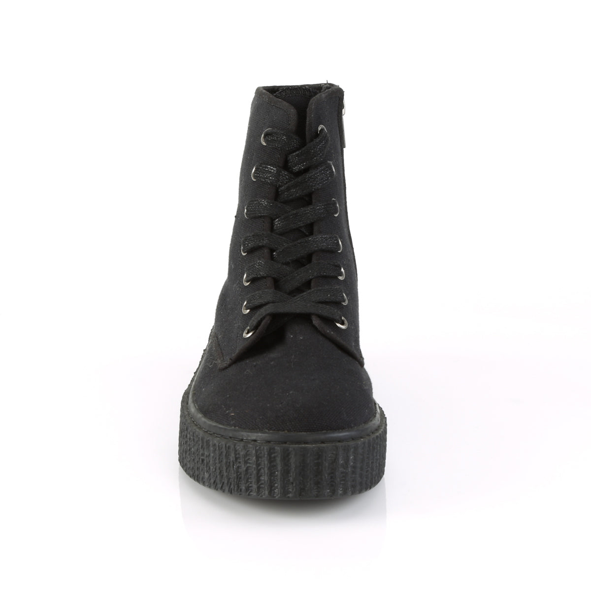 Additional Description 1 1/2"" (38mm) Platform Rubber Sole High Top Round Toe Lace-Up Front Creeper Sneaker, Full Inner Side Metal Zip Closure Closure