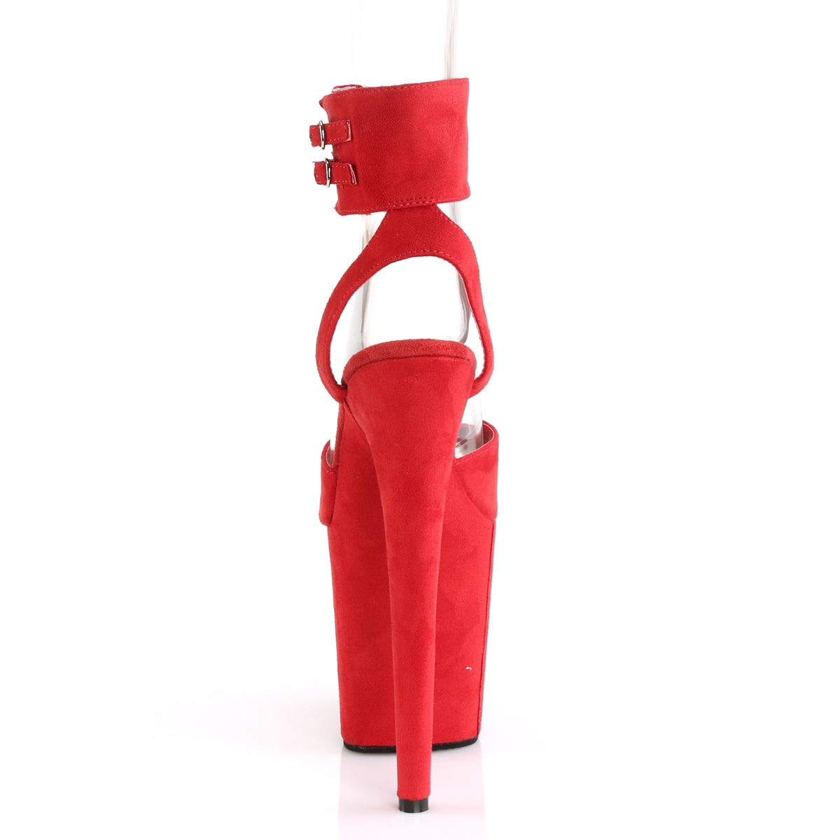 Pleaser Womens Sandals FLAMINGO-891 Red Faux Suede/Red Faux Suede
