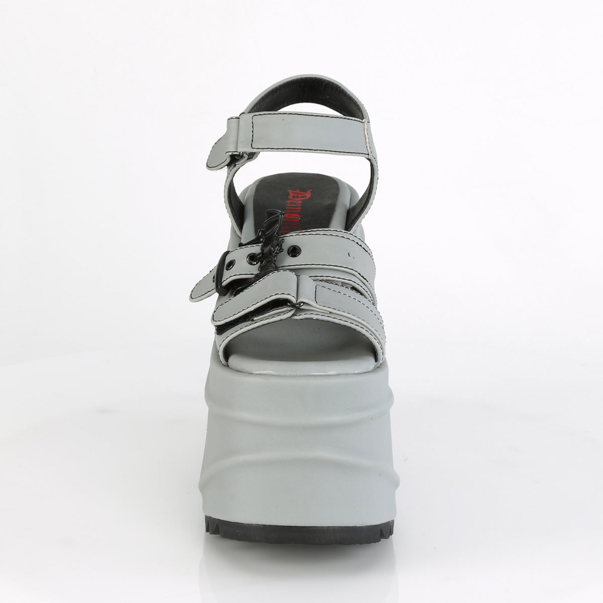 Name DemoniaCult Womens Sandals WAVE-13 Grey Reflective Vegan Leather