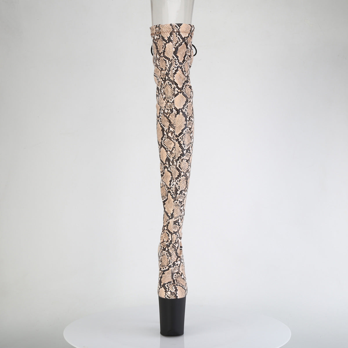 8"" (200mm) Heel, 4"" (100mm) Platform Platform Stretch Snake Print Pull-On Thigh Boot w/Rear Tie Fastening